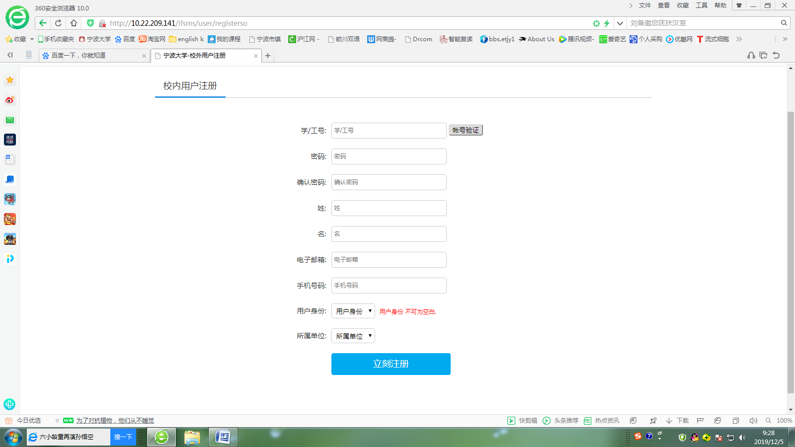 2. 下拉,直至屏幕出现黄色的校内用户注册,单击进入注册页面。